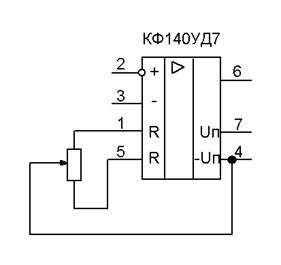 В качестве операционного усилителя выберем микросхему КФ140УД7 (SO-08). Габариты представлены на рисунке 5, схема включения на рисунке 6, а ее параметры приведены в таблице 3.