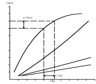 Зависимость выходной величины от входной величины в установившемся режиме называется статической характеристикой ОР. Статические характеристики могут быть как линейными, с различными коэффициентами наклона, так и нелинейными, при чем большинство реальных объектов в целом имеют нелинейные.