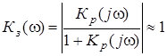 Как видим, ошибка состоит из двух составляющих. Первая зависит от задающего воздействия и будет отсутствовать, если Кз(jω) = 1 во всем диапазоне частот, занятых спектром задающего воздействия. На практике частотная характеристика Кз(jω) отличается от 1 в области верхних частот. Значит, будут с ошибкой отрабатываться высокочастотные изменения задающего воздействия, и ошибка поэтому называется динамической. Вторая составляющая связана с возмущающим воздействием и появляется, если в области частот, занятых спектром возмущающего воздействия, АЧХ замкнутой системы будет отлична от нуля.