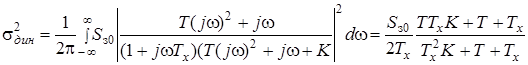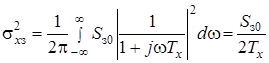 Допустим, задающее воздействие формируется из белого шума с спектральной плотностью Sз0 пропусканием его через интегрирующую цепь с постоянной времени Tx. Тогда дисперсия задающего воздействия