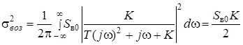 Дисперсия ошибки по возмущению при условии, что возмущающее воздействие является белым шумом со спектральной плотностью Sв0, равна: