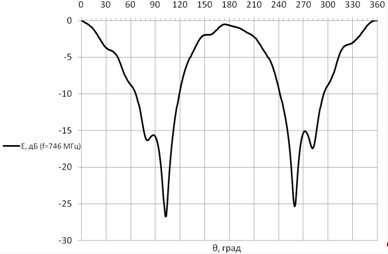 Рис. 1.9 Двухмерная круговая диаграмма направленности для частоты 746МГц