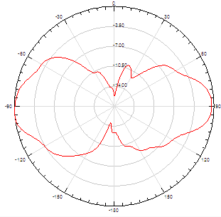 Из полученной диаграммы видно, что с данным типом экрана происходит симметричное подавление излучения, но при этом изменяется форма диаграммы направленности как в направлении экрана, так и в противоположном направлению.