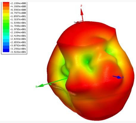 Рис. 1.11 Трехмерная круговая диаграмма направленности для частоты 742 МГц.