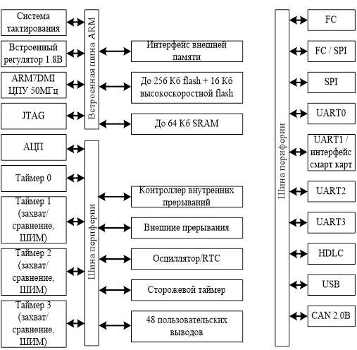 Ниже приведена структура микроконтроллера ARM компании STMicroelectronics [4] .