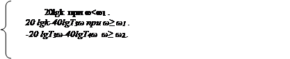 Первая асимптота начинается в точке 20 lgk и продолжается до точки сопрягающей частоты ω1 =1/ T3 - начало второй асимптоты, которая откладывается с наклоном - 20дБ/дек. Третья асимптота начинается в точке сопрягающей частотыω2 =1/ T3 и имеет наклон уже - 40дБ/дек. В результате получим характеристику, изображенную на рис.2.