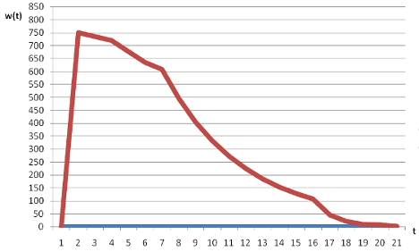 Рисунок 5. Весовая характеристика апериодического звена второго порядка