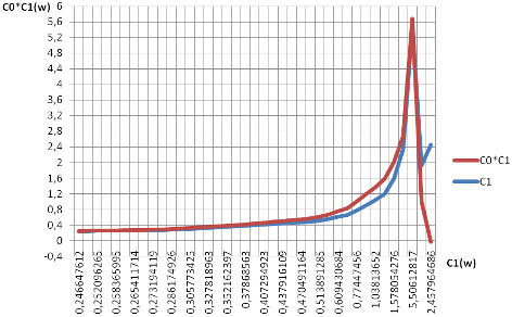 Максимальное значение функции С1 С0 = 0.4342 при С1 = 1.578. Необходимо выбрать точку правее глобального максимума. Следовательно можно взять С1 = 2.346, С1 С0 = 0.326. В результате решения системы уравнений определяются оптимальные параметры настройки: