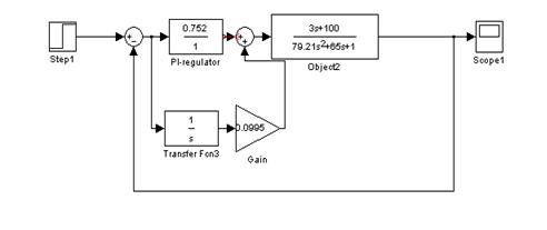 ПИ-регулятор можно представить как параллельное соединение пропорционального и интегрирующего звеньев. Коэффициент передачи пропорционального звена в соответствии с расчетом, приведенным выше, равен 0,752, коэффициент передачи интегрирующего звена равен