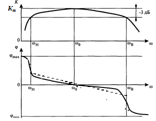 где К(ω) и Km – коэффициент усиления на частоте ω и максимальное значение коэффициента усиления.