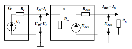 При практическом использовании усилителей большое значение имеет соотношение величин Rг. и Rвх. Если Rг << Rвх то Uвх »Uг. Если Rг >> Rвх, то Iвх » Iг. Если же Rвх и Rг соизмеримы, то необходимо знать значения их сопротивлений для того, чтобы определить, какой уровень сигнала будет действовать непосредственно на входе усилителя.