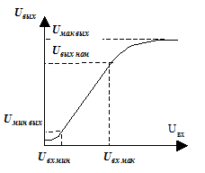 Амплитудная характеристика. Графическая зависимость амплитуды (или действующего значения) выходного напряжения усилителя от амплитуды (или действующего значения) его входного напряжения на некоторой неизменной частоте сигнала получила название амплитудной характеристики (рисунок 3.7).
