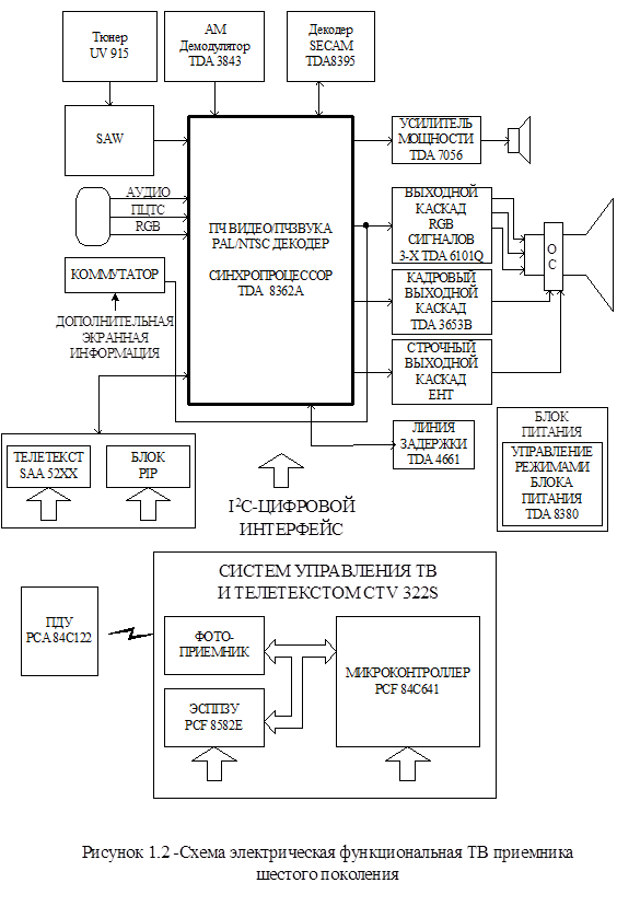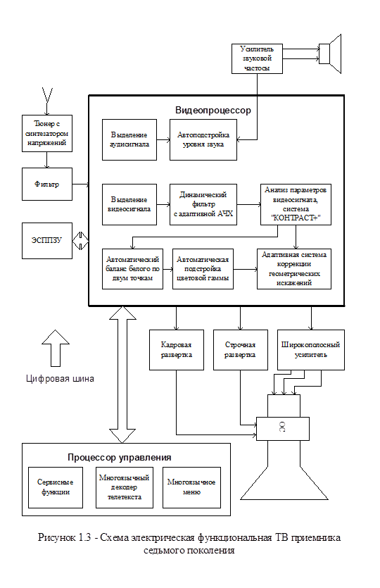 Далее рассмотрим структурную схему телевизионного приемника седьмого поколения, которая представлена на рисунке 1.3.