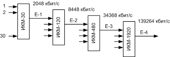 Иерархия систем передачи с ИКМ представлена на рис. 1
