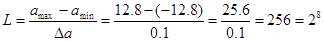 Расчет уровней квантования. Число уровней квантования L рассчитывается как число шагов длиной Δa, которое может поместиться в заданном интервале значений передаваемого сообщения.