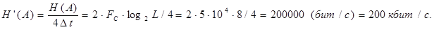 Расчет производительности источника. Производительность источника – это количество бит информации, которое можно передать за один интервал дискретизации сообщения с определенной скоростью, называемой производительностью источника. Интервал дискретизации рассчитан по теореме Котельникова и составляет 0,01мс. Таким образом, скорость передачи составит: