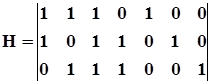 Для кода (7,4,3) проверочная матрица имеет вид: