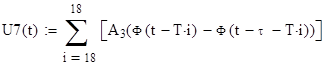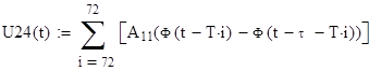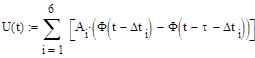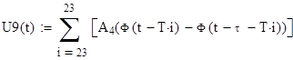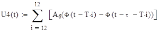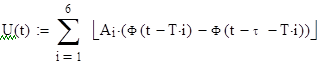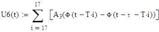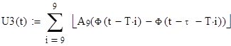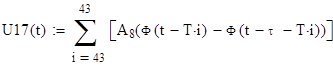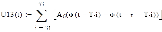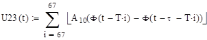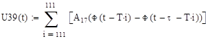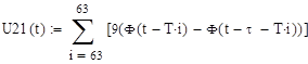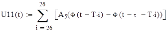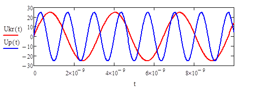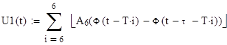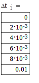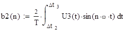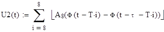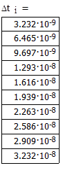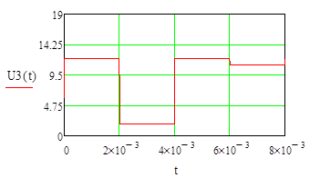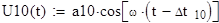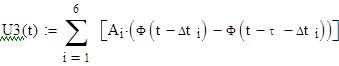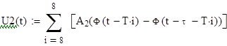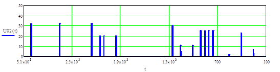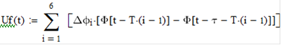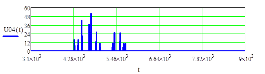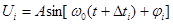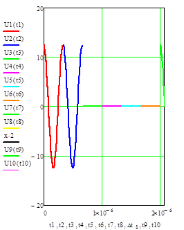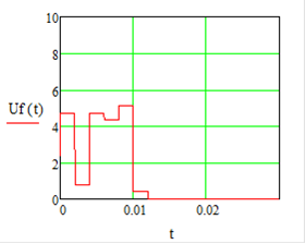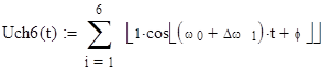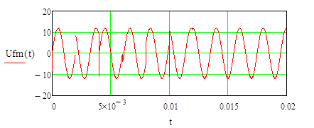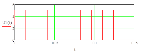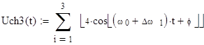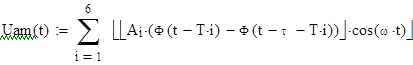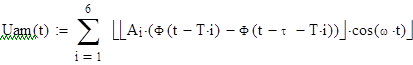 Як величину амплітуди цього коливання використати добуток десяткового еквіваленту кодів другого рядка на “амплітудну вагу” дискрети, як частоту ω= 2π/τ, а як величину часового зсуву Δti = (і - 1) ∙τ, де і - номер символу, τ = 1/В - тривалість символу.