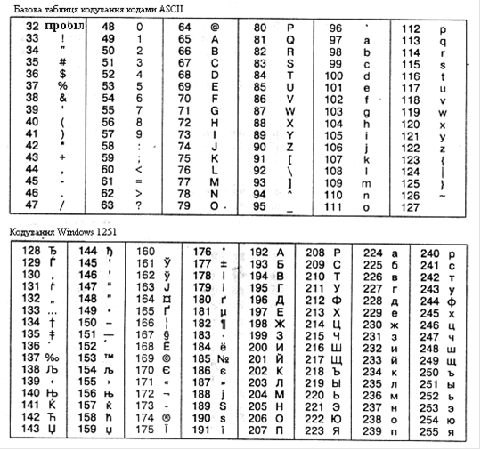 здійснити кодування Вашого повідомлення, заданого в розділі 1 Завдання на курсове проектування, в двійкову послідовність із застосуванням для представлення символів Вашого повідомлення восьмибітових символів кодів таблиці Windows 1251 (див. надану нижче таблиц).