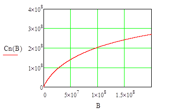 2) побудувати в логарифмічному масштабі швидкості графік залежності пропускної спроможності від швидкості посимвольної передачі В