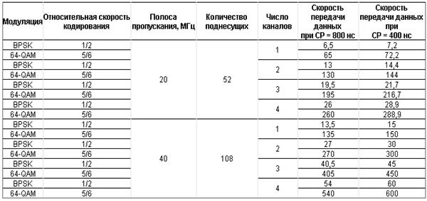 1.4 Факторы более высокой скорости передачи данных стандарта 802.11n