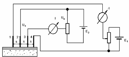 - поверхностное сопротивление образца материала между параллельно поставленными электродами шириной