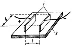 Рисунок 12 – Эскиз размещения электродов (1) на поверхности образца из электроизоляционного материала (2) при измерении ![]()