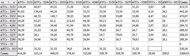 Таблица 12.2 Матрица ПЦТ пропорционально ёмкости станций