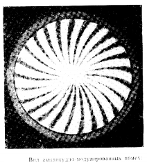При синусоидальной модуляции на ИКО наблюдаются светлые спиральные линии, затрудняющие наблюдение отметок цели.
