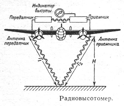Под крыльями самолета установлены антенны: одна передающая, другая приемная. Они разнесены и разделены корпусом самолета, чтобы уменьшить прямое прохождение излученного сигнала в приемник. В приемнике смешиваются принятый сигнал и ослабленный сигнал от передатчика. В результате смешения (а это нелинейное преобразование сигналов) выделяется сигнал разностной частоты. Индикатор высоты представляет собой стрелочный прибор. Шкала его проградуирована в метрах, хотя он измеряет частоту разностного сигнала.