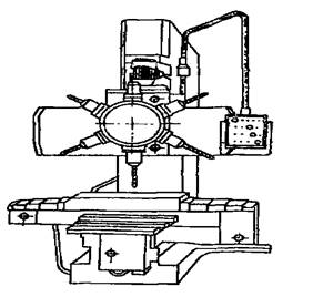 Смену инструмента производят поворотом и фиксацией магазина (число инструментов - 24) относительно шпинделя, что позволяет обеспечить высокую надежность и точность.