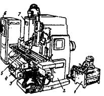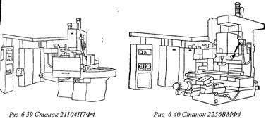 Для объемной обработки ковочных, вытяжных и вырубных штампов, литейных моделей и кокилей, пресс-форм и плоских сложных контуров применяют горизонтально-фрезерные станки с ЧПУ мод.6В443ФЗ и 6В444ФЗ (рис.7). Широкий диапазон изменения скорости вращения шпинделя и оснащение станка ускорительной съемной головкой позволяют вести наиболее производительную обработку. Применение съемной двухшпиндельной головки дает возможность обрабатывать одновременно две детали. Программа работы станка записывается на программоносителе и вводится непосредственно с пульта устройства ЧПУ, которое вычисляет траекторию движения режущего инструмента и скорость его перемещения по трем координатам. Фактическое положение подвижных узлов контролируется датчиками обратной связи. Не меняя программы, на станке можно изготовить пуансон и матрицу, зеркальное изделие, а также изделие в масштабе (1: 2, 1: 5, 1: 10), установить инструмент другой длины и диаметра, изменить припуск на последующую обработку.
