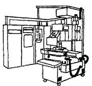 В состав типового ГПМ для механообработки корпусных заготовок входят; многоцелевой сверлильно-фрезерно-расточный станок с ЧПУ; накопитель столов-спутников с заготовками, устройство для их автоматической загрузки и разгрузки со стола станка; механизм автоматической смены режущего инструмента с инструментальным магазином; устройства для выполнения контрольно-измерительных операций на станке; механизмы уборки стружки и другие вспомогательные устройства