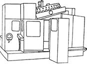 Сверлильно-фрезерно-расточные станки горизонтальной компоновки преобладали в парке многоцелевых станков. Около 80% этих станков оснащены поворотными столами с приспособлениями-спутниками для автоматической смены заготовок, что позволяет обрабатывать детали в автоматическом режиме с четырех-пяти сторон. Горизонтальные станки обычно имеют неподвижную стойку и крестовый стол с поворотной частью, либо поперечно-подвижную стойку и продольно-подвижный поворотный стол. Инструментальные магазины барабанного типа размещаются на стойте, а магазины цепного типа - рядом со станком или на стойке сбоку. Магазины задают, как правило, емкостью на 16...90 инструментов, что в большинстве случаев достаточно для обработки сложных корпусных деталей.