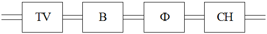 На вход подается переменное напряжение Uc, которое с помощью трансформатора TV изменяется до требуемой величины. Кроме того, трансформатор осуществляет гальваническую развязку источника выпрямленного напряжения нагрузочного устройства, что позволяет получать с помощью нескольких вторичных обмоток различные значения напряжений, гальванически не связанные. После трансформатора переменное напряжение с помощью выпрямителя В преобразуется в пульсирующее напряжение. В выпрямленном напряжении помимо постоянной составляющей, присутствует и переменная, которая с помощью сглаживающего фильтра Ф снижается до требуемого уровня, так, что напряжение на выходе фильтра имеет очень малые пульсации. Установленный после фильтра стабилизатор постоянного напряжения СН поддерживает неизменным напряжение UН на нагрузке при изменении значений выпрямленного напряжения или сопротивления нагрузки.
