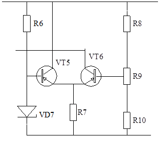 При уменьшении тока нагрузки до номинального значения, падение напряжения на резисторе R11становится меньше UБэнас7 и он запирается – схема защиты автоматически отключается.