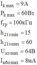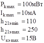 По полученным данным выбираем транзистор по [9] типа КТ361А с параметрами: