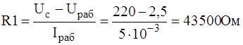 Величина сопротивления балластного резистора R1: