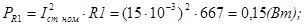 Принимаем Rэ=220(Ом). Мощность рассеяния на сопротивлении: