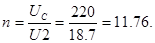 Коэффициент трансформации для обмоток «треугольник-треугольник»
