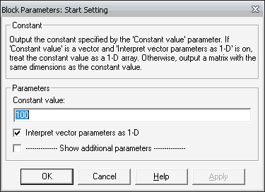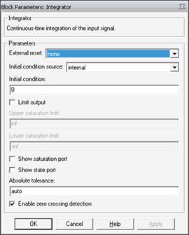 При моделировании непрерывных систем с использованием переменного шага необходимо указать точность вычислений: относительную (Relative tolerance) и абсолютную (Absolute tolerance). По умолчанию они равны соответственно 10-3 и auto.