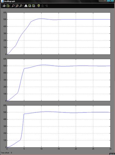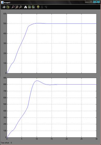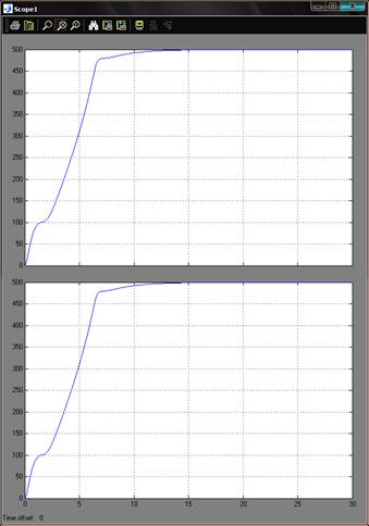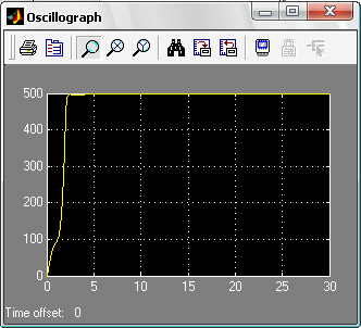 Для того, чтобы открыть окно просмотра сигналов необходимо выполнить двойной щелчок левой клавишей “мыши” на изображении блока. Это можно сделать на любом этапе расчета (как до начала расчета, так и после него, а также во время расчета). В том случае, если на вход блока поступает векторный сигнал, то кривая для каждого элемента вектора строится отдельным цветом.