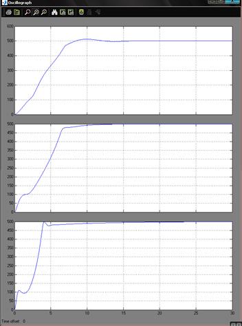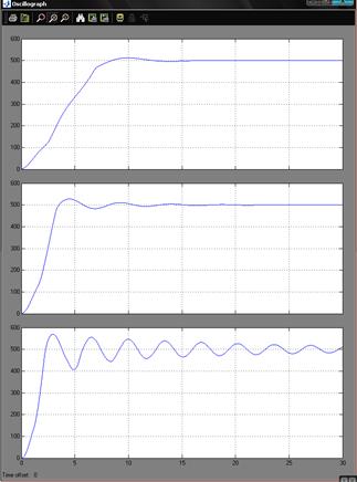 А теперь сделаем наблюдение ПИ-, ПИД- и ПД-регуляторов соответственно. Коэффициенты, равные нулям, отключают составляющие, превращая ПИД в другие виды регульяторов