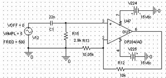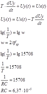 Передаточной функцией ФВЧ 1го порядка является передаточная функция апериодического звена 1го порядка. Рассчитаем ФВЧ с помощью передаточной функции звена 1го порядка.