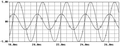 Рис 19. Графики зависимости Uвых (t) и Uвх (t)