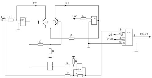 Величина сопротивления R5 в это выражение не входит. Этот резистор выбирают таким образом, чтобы падение напряжения на нём не превышало выходного напряжения операционного усилителя. Конденсаторы С1 и С2 служат для дополнительной частотной коррекции. Компенсация температурной зависимости Ut выполняется с помощью резистора R4, имеющего положительный температурный коэффициент порядка 0,3% К.
