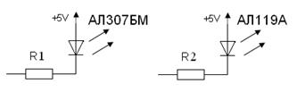 Светодиод АЛ307АМ, с параметрами UПР = 2В, IПР =10 мА.