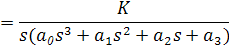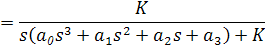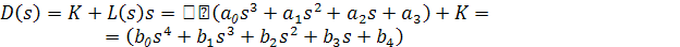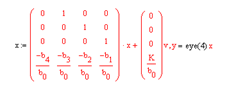 D(s)y(t)=Kv (t). Если D(s)=b0 s4 +b1 s3 +b2 s2 +b3 s+b4 =0, ,то уравнение состояния имеет вид