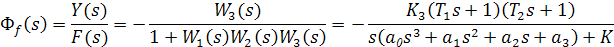Главная передаточная функция или передаточная функция замкнутой системы при f = 0:
