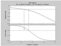 Строим графики логарифмических характеристик разомкнутой системы, с помощью MATLAB(оператор bode или margin ) Рис. 1.3 а.
